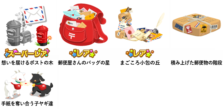 ★想いを届けるポストの木 No.464 ラブレター付ラザニアアツアツラブレターの実 ☆郵便屋さんのバッグの星 まごころ小包の丘 ☆積み上げた郵便物の階段 手紙を奪い合う子ヤギ達