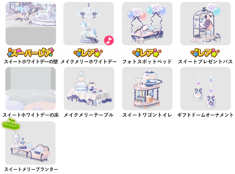 ★スイートホワイトデーの壁 ☆メイクメリーホワイトデー(ネイロアイテム) ☆フォトスポットベッド ☆スイートプレゼントバス スイートホワイトデーの床 メイクメリーテーブル スイートワゴントイレ ギフトドームオーナメント スイートメリープランター