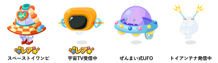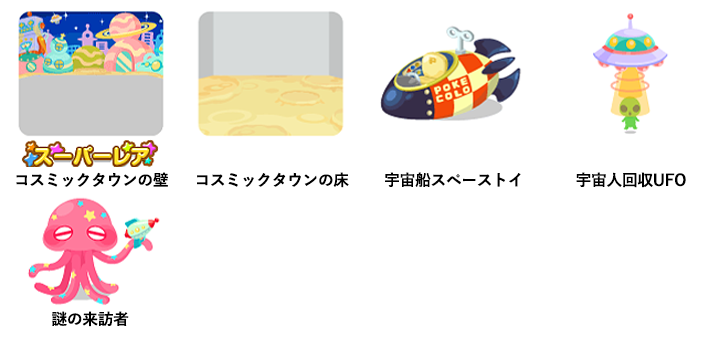 ☆コスミックタウンの空 スペースペットを探して 宇宙船スペーストイの星 コスミックな丘 宇宙探索ジェットのドア ブリキのUFOステップ ぜんまい式レトロボット ポケコロケット 宇宙TV プロペラドローン