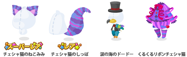 ★チェシャ猫のねこみみ ☆チェシャ猫のしっぽ 涙の海のドードー くるくるリボンチェシャ猫
