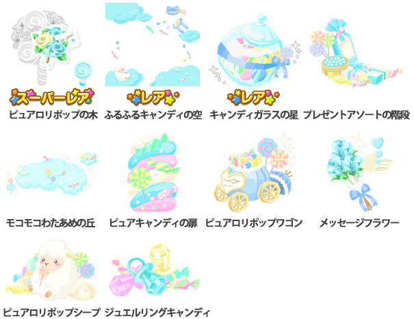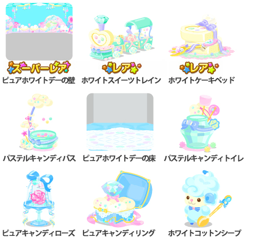 ★ピュアホワイトデーの壁 ☆ホワイトスイーツトレイン ☆ホワイトケーキベッド パステルキャンディバス ピュアホワイトデーの床 パステルキャンディトイレ ピュアキャンディローズ ピュアキャンディリング ホワイトコットンシープ