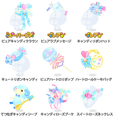 ★ピュアキャンディクラウン ☆ピュアラブメッセージ ☆キャンディリボンハット キュートリボンキャンディ ピュアハートロリポップ ハートロールケーキバッグ てつなぎキャンディシープ キャンディローズブーケ スイートローズネックレス