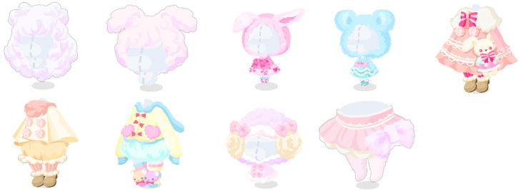 ☆ファンシールームの壁 ファンシールームの床 ぬいぐるみファーベッド お手伝いおともだちバス カラフルファープランター おおきなファーうさちゃん いっしょにお茶会テーブル ピンクのおともだち みずいろのおともだち
