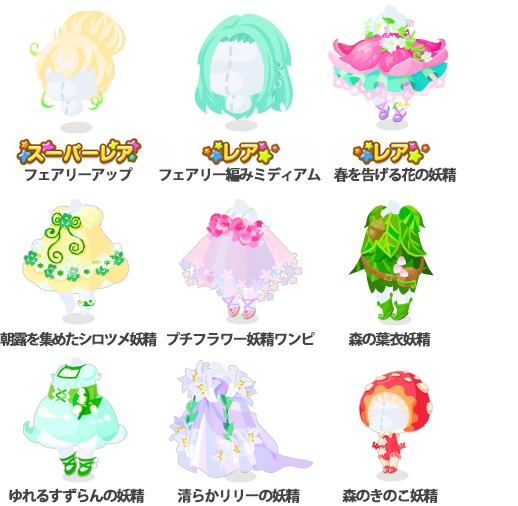 ★フェアリーアップ ☆フェアリー編みミディアム ☆春を告げる花の妖精 朝露を集めたシロツメ妖精 プチフラワー妖精ワンピ 森の葉衣妖精 ゆれるすずらんの妖精 清らかリリーの妖精 森のきのこ妖精