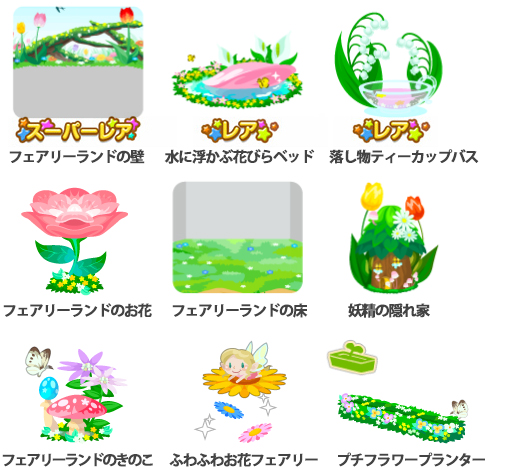 ★フェアリーランドの壁 ☆水に浮かぶ花びらベッド ☆落し物ティーカップバス フェアリーランドのお花 フェアリーランドの床 妖精の隠れ家 フェアリーランドのきのこ ふわふわお花フェアリー プチフラワープランター