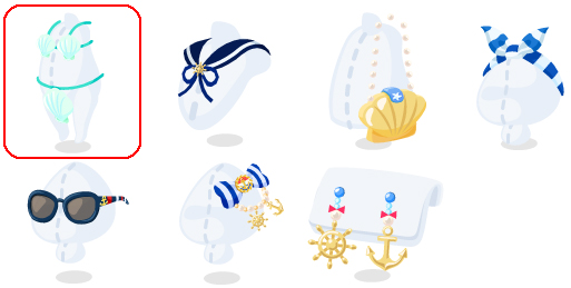 ★フェミニンシェルビキニ ホワイトセーラーカラー ピュアシェルバッグ ☆レッドボーダーカチューム ピンクマリンサングラス ☆パステルマリンリボン ホワイトオーシャンピアス