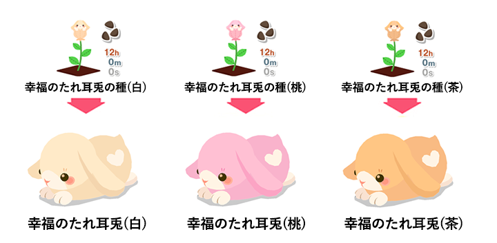 幸福のたれ耳兎の種(桃) → 幸福のたれ耳兎(桃)