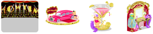☆ショータイムの壁 ピンクリムジンのベッド シャンパングラスのイス ショーガールのドレッサー