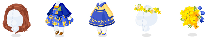 ☆ミモザハーフアップ ナチュラルミモザワンピ バイカラーミモザワンピ ミモザの花冠 春待ちミモザブーケ