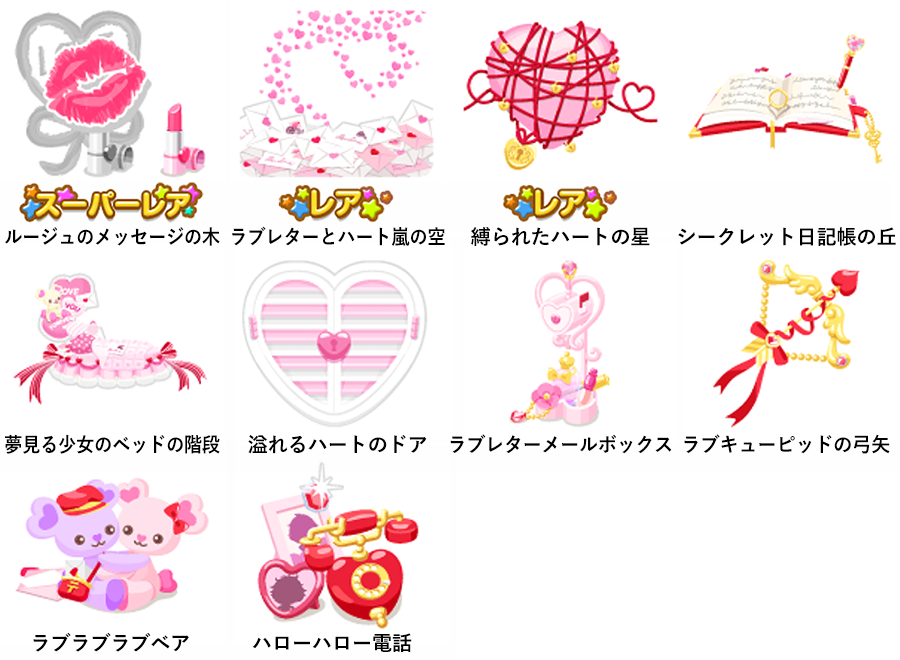 【VIPガチャで復刻】 ・2018.04.09〜04.16 【ピックアップガチャで復刻】 ・2023.06.26〜2023.06.30『テーマコレクションポケスタ記念2』 (ラブベアイヤー・マイラブダイアリー のみ復刻)
