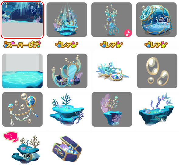 ★人魚姫と泡沫の恋の壁 ☆儚恋を囁く海棚のお風呂 ☆蒼き波間に舞う調べ(ネイロアイテム) ☆泡夢を奏でる硝子瓶ベッド 人魚姫と泡沫の恋の床 頬つたう涙を映す鏡台 碧に沈む宝石貝トイレ 紺碧の海に踊る泡沫 碧色のジュエルチェーン 海に佇む蒼棚のコンロ 波間に揺れる碧色のシンク 魚と戯れる紺碧のテーブル 泡沫を抱くオーブン 優美な宝箱冷蔵庫