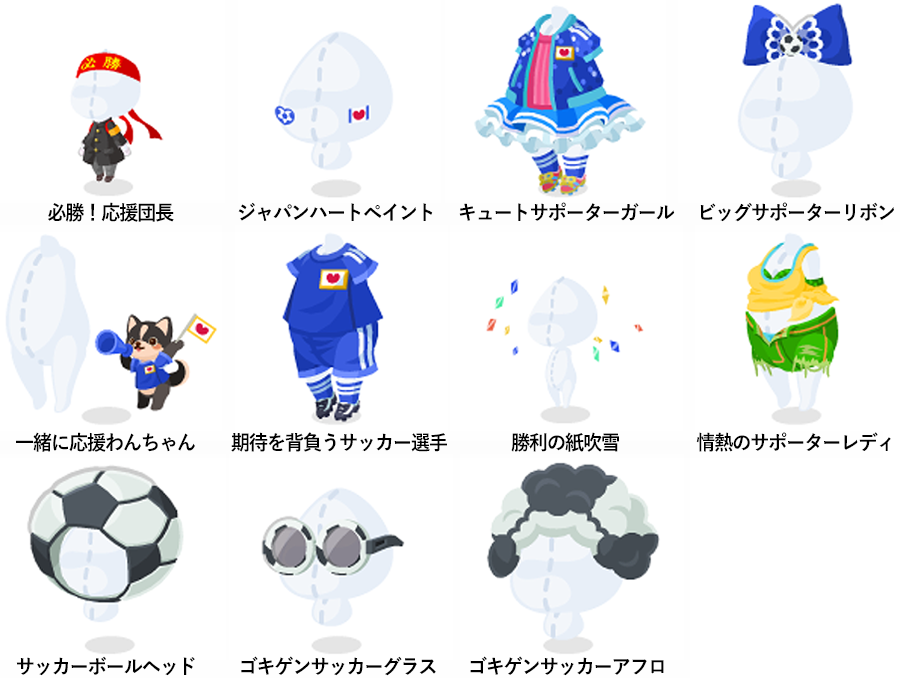 ☆赤組リボンハチマキ ☆スポーツバンドウェーブ ☆サッカーボールボディ ☆サッカーファンタジア おちゃめ体操服 やんちゃ体操服 やんちゃヒーロー紅白帽 友達サッカーボール 必勝!応援団長 ジャパンハートペイント キュートサポーターガール ビッグサポーターリボン 一緒に応援わんちゃん 期待を背負うサッカー選手 勝利の紙吹雪 情熱のサポーターレディ サッカーボールヘッド ゴキゲンサッカーグラス ゴキゲンサッカーアフロ