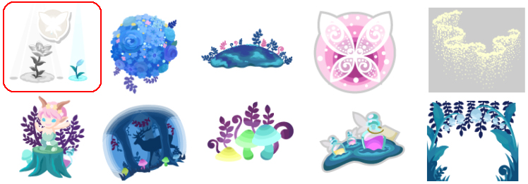 ★精霊の住む森の壁 ☆精霊の住む森の床 ☆眠る大樹ベッド 湧き上がる泉風呂 光るお花のトイレ 森のお花ブランコ 木漏れ日に集う妖精たち 森のすずらんランプ 光るきのこラグ