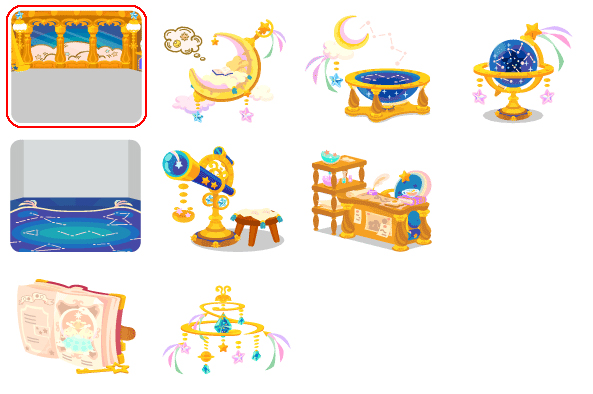 ★夢見る天文部屋の壁 ☆天体ムーンベッド ☆星空水面のお風呂 星空天球儀 夢見る天文部屋の床 星を眺める天体望遠鏡 天文学者の机 古代の天文書 星くずシャンデリア