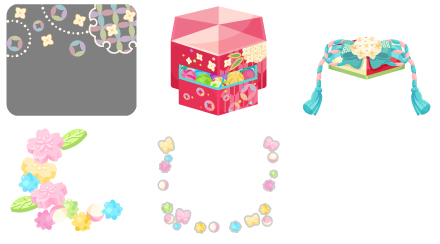 ☆沈丁花と雪輪紋様の空 春の花柄千代箱の星 沈丁花の飾り蓋の丘 春のお干菓子の階段 春のお干菓子の囲み枠