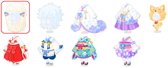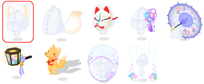 ★水無月白狐のみみ ☆水無月白狐のしっぽ 雨ふり狐の面 雨つぶあじさい飾り 嫁入りあじさい番傘 嫁入り水無月提灯 お供の仔狐 ☆あじさい透かし綿帽子 水無月のやさしい雨