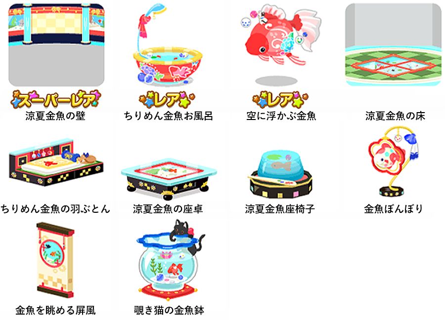 ★涼夏金魚の壁 ☆ちりめん金魚お風呂 ☆空に浮かぶ金魚 涼夏金魚の床 ちりめん金魚の羽ぶとん 涼夏金魚の座卓 涼夏金魚座椅子 金魚ぼんぼり 金魚を眺める屏風 覗き猫の金魚鉢
