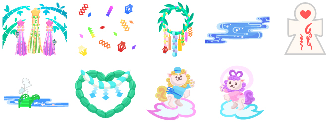 ☆無病息災!七夕飾りの空 舞い散る七夕飾り 笹の葉飾りの星 七夕流れ星の丘 ひとかた恋愛祈願のドア