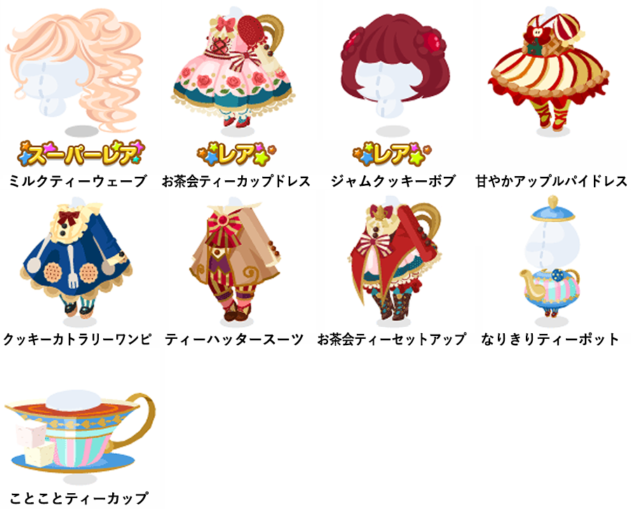 ★ミルクティーウェーブ ☆お茶会ティーカップドレス ☆ジャムクッキーボブ 甘やかアップルパイドレス クッキーカトラリーワンピ ティーハッタースーツ お茶会ティーセットアップ なりきりティーポット ことことティーカップ