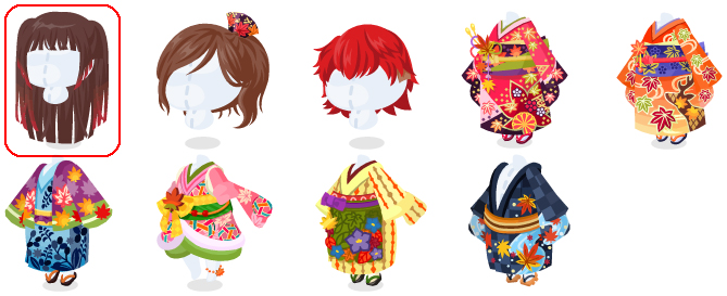 ★艶やか紅葉染めの二つ結い ☆紅葉かんざしの麗し結い 紅葉色の外はね刈り込み ☆艶やかちりめん紅葉の着物 紅葉見つめる鹿の着物 いなせ羽織の紅葉浴衣 元気印のお風呂当番 宿の名物ベテラン仲居 紅葉流れる市松の着物