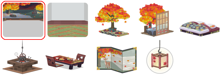 ★漆盆の練り切り紅葉の木 No.477 モミジビエ練り切り紅葉の実 ☆特別な日の貸切宿の星 紅葉色づく庭園宿の丘 紅葉模様の組子障子 秋の紅葉渓谷階段 鹿の佇む夜紅葉 紅葉を照らす灯篭看板 秋の夜長を灯す灯篭 散り紅葉にそっと待つ鹿 ☆紅葉舞い散る水辺の空