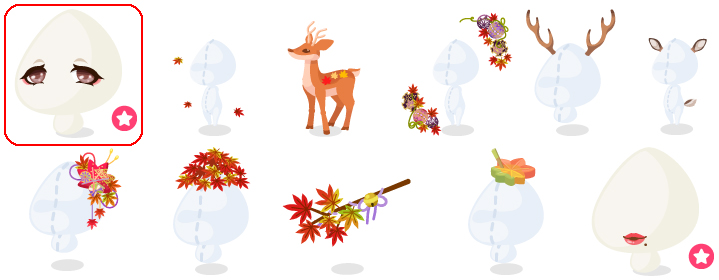 ★うるうる小鹿の瞳(顔パーツ) ひらり舞う紅葉 紅葉模様のお供鹿 華やか紅葉の鞠模様 牡鹿の立派な角 ☆鹿のお耳としっぽ 艶やか紅葉の髪飾り 降り積もる紅葉 紅葉一枝 お着きお菓子の練り切り ☆艶ぼくろ紅葉の口紅(顔パーツ)
