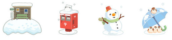 冬の朝、待ち合わせの丘 雪化粧のいつものポスト 登校前に雪だるま作ろう ひっそりおしくらすずめ