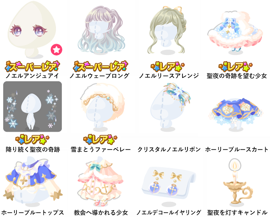 ★ノエルアンジュアイ(顔パーツ) ★ノエルウェーブロング ☆ノエルリースアレンジ ☆聖夜の奇跡を望む少女 ☆降り続く聖夜の奇跡 ☆雪まとうファーベレー クリスタルノエルリボン ホーリーブルースカート ホーリーブルートップス 教会へ導かれる少女 ノエルデコールイヤリング 聖夜を灯すキャンドル