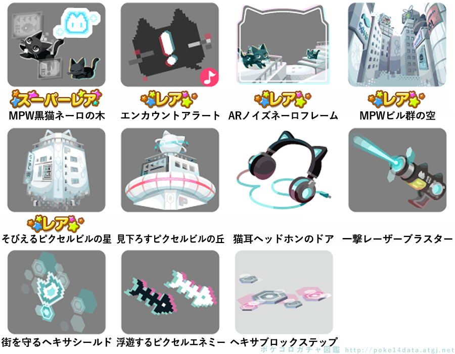 ★MPW黒猫ネーロの木 No.1403 猫印の回復乾パン ピクセルキャットの実 ☆エンカウントアラート(Cネイロアイテム) ☆ARノイズネーロフレーム ☆MPWビル群の空 ☆そびえるピクセルビルの星 見下ろすピクセルビルの丘 猫耳ヘッドホンのドア 一撃レーザーブラスター 街を守るヘキサシールド 浮遊するピクセルエネミー ヘキサブロックステップ