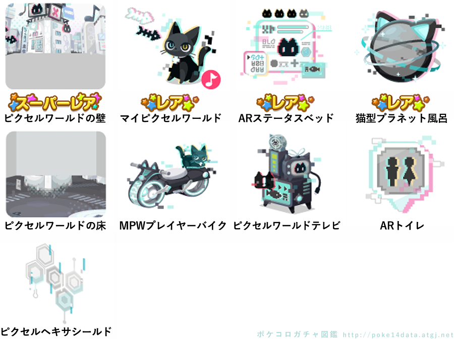 ★ピクセルワールドの壁 ☆マイピクセルワールド(ネイロアイテム) ☆ARステータスベッド ☆猫型プラネット風呂 ピクセルワールドの床 MPWプレイヤーバイク ピクセルワールドテレビ ARトイレ ピクセルヘキサシールド