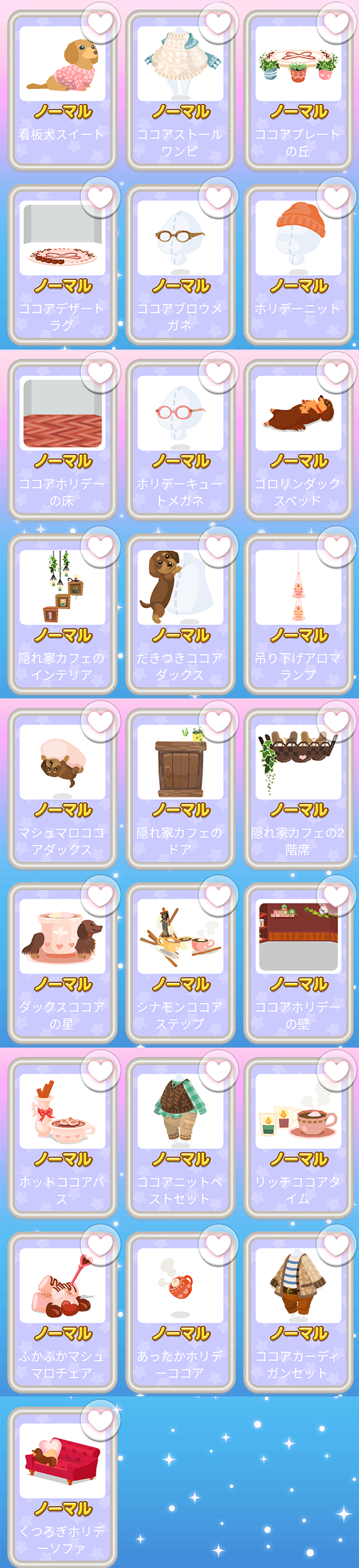 看板犬スイート ココアストールワンピ ココアプレートの丘 ココアデザートラグ ココアブロウメガネ ホリデーニット ココアホリデーの床 ホリデーキュートメガネ ゴロリンダックスベッド 隠れ家カフェのインテリア だきつきココアダックス 吊り下げアロマランプ マシュマロココアダックス 隠れ家カフェのドア 隠れ家カフェの2階席 ダックスココアの星 シナモンココアステップ ココアホリデーの壁 ホットココアバス ココアニットベストセット リッチココアタイム ふかふかマシュマロチェア あったかホリデーココア ココアカーディガンセット くつろぎホリデーソファ
