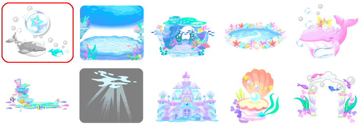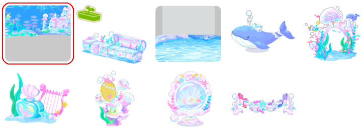★マーメイドキャッスルの壁 ☆人魚姫の宝物プランター ☆マーメイドスクエアの床 海を見守るロイヤルクジラ ジェリーフィッシュバス サンドボトルトイレット コーラルメイクドレッサー 真珠貝のプリンセスベッド ぷかぷか小魚ガーランド