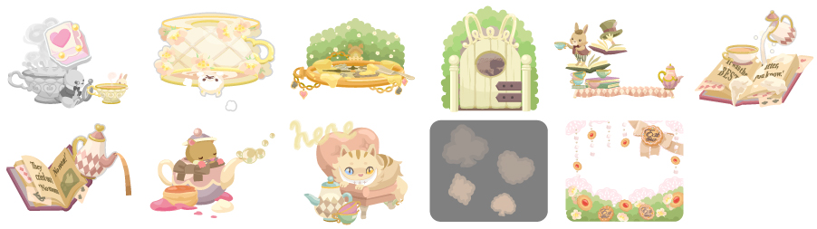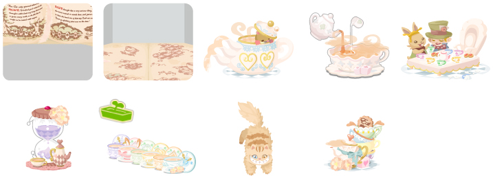 ★不思議の国の物語の壁 不思議の国の物語の床 ねぼけヤマネの暗唱ベッド ☆たっぷりミルクティバス 終わることのないお茶会 ミルクティ砂時計トイレ ティーカッププランター からかいチェシャ猫 お茶とクッキーをどうぞ