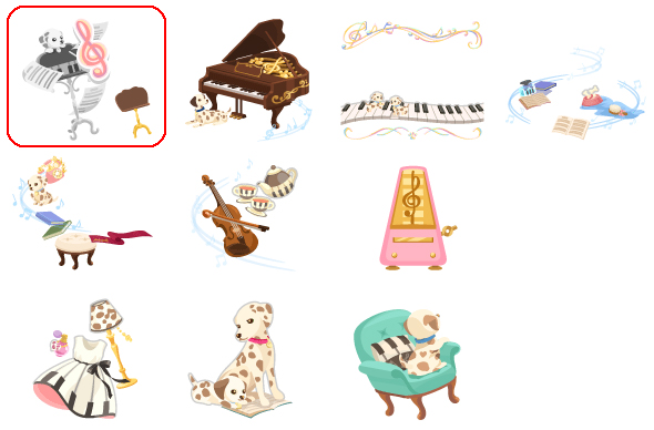 ★ダルメシアン♪ノートの壁 ☆オスカー思い入れのピアノ(ネイロアイテム) ☆スイングリズムバス ☆メロディラインソファ ジャズスイングメロディ ダルメシアン♪ノートの床 ジャズフレーズテーブル ピアノハーモニーランプ キュートパピートイレ メロディルームプランター