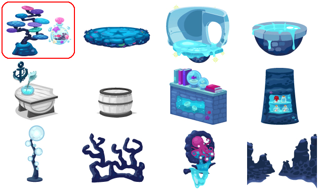 ★珊瑚ボトルツリー 珊瑚の丘 珊瑚の海に浮かぶ星 珊瑚の海に浮かぶステップ 珊瑚の海テーブル 珊瑚の海スツール 珊瑚と海の本棚 珊瑚と海の棚 珊瑚と泡のスタンド 珊瑚フェンス 珊瑚とタコ 珊瑚と海の水面