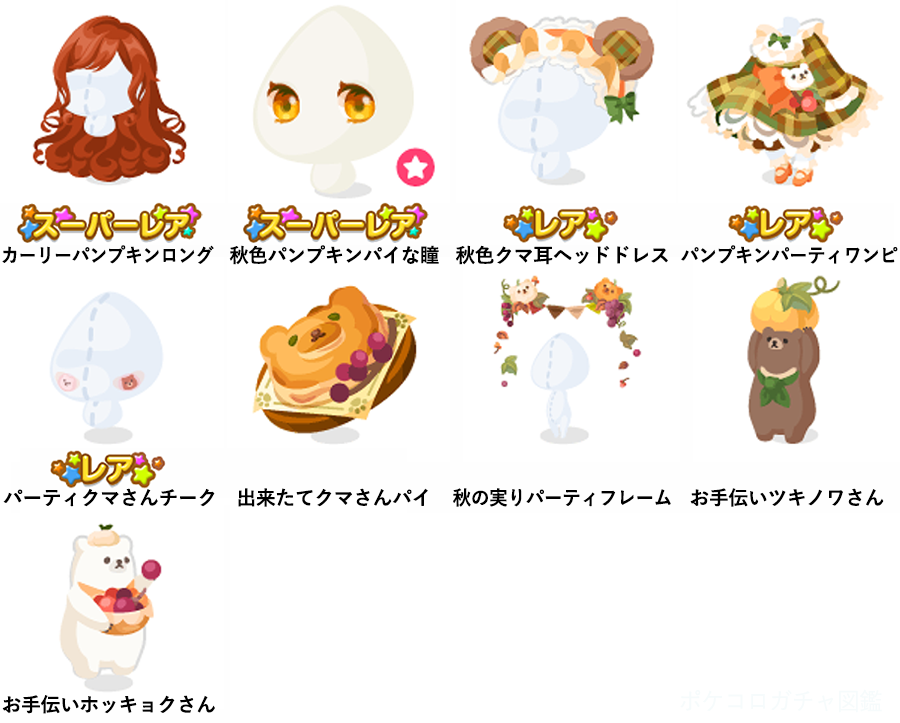 ★カーリーパンプキンロング ★秋色パンプキンパイな瞳(顔パーツ) ☆秋色クマ耳ヘッドドレス ☆パンプキンパーティワンピ ☆パーティクマさんチーク 出来たてクマさんパイ 秋の実りパーティフレーム お手伝いツキノワさん お手伝いホッキョクさん