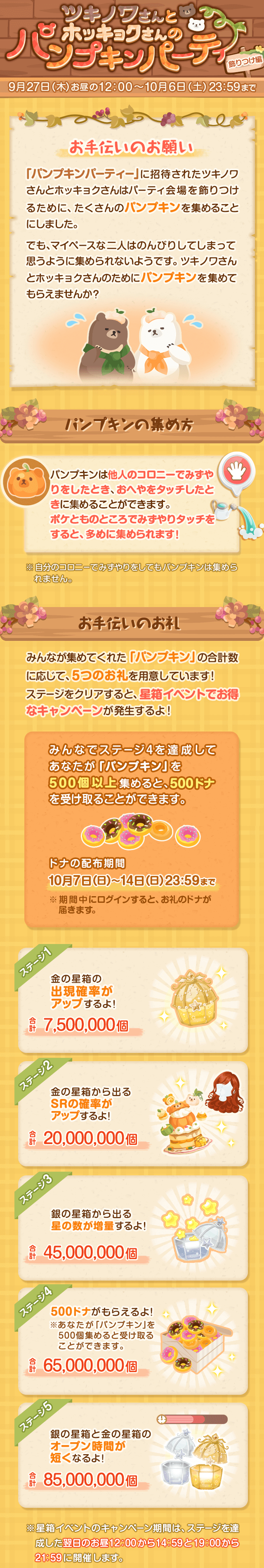 ★パンプキンパーティの壁 ☆おめかしツキノワグマさん ☆秋満喫ホッキョクグマさん パンプキンパーティの床 秋色スイーツテーブル パンプキンパーティセット