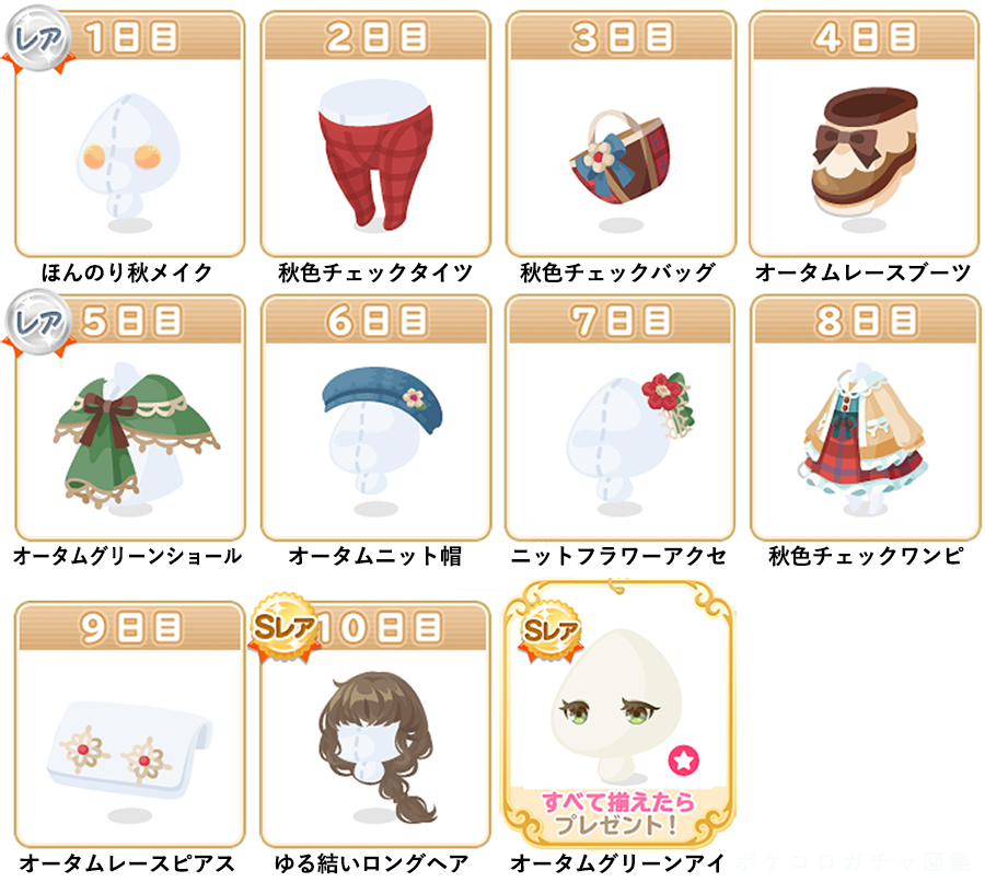 ☆ほんのり秋メイク 秋色チェックタイツ 秋色チェックバッグ オータムレースブーツ ☆オータムグリーンショール オータムニット帽 ニットフラワーアクセ 秋色チェックワンピ オータムレースピアス ★ゆる結いロングヘア ★オータムグリーンアイ(顔パーツ)