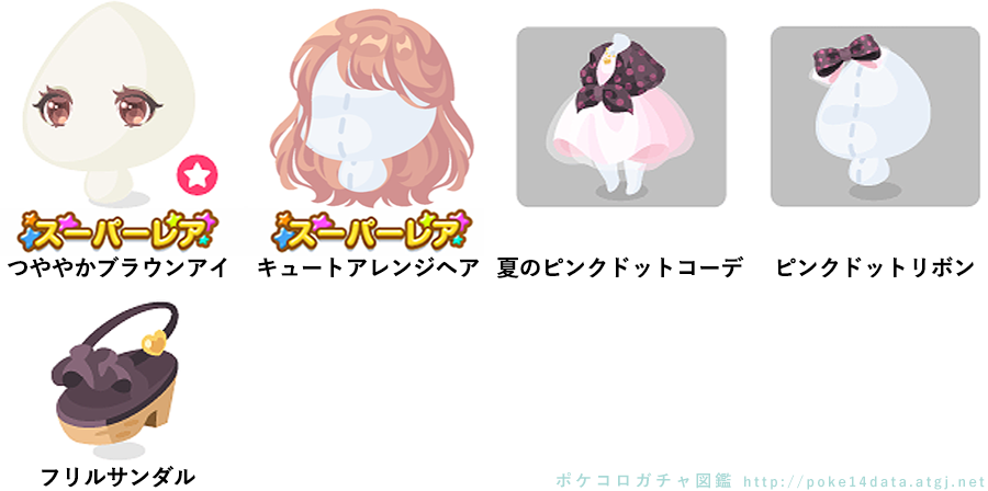 ★つややかブラウンアイ(顔パーツ) ★キュートアレンジヘア 夏のピンクドットコーデ ピンクドットリボン フリルサンダル