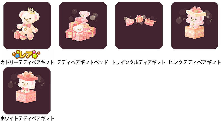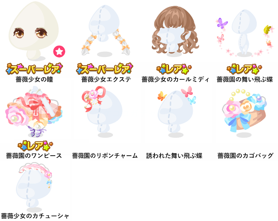 ・'12年8月 メルヘン遊園地 ・'15年2月 フルールレースメリー ・'15年5月 初恋シトラスジャーニー ・'15年7月 夏色スワン ・'16年9月 オートクチュール・ミミ ・'17年4月 こだわりアイテム +1 ・'17年5月 トイプリティーガール