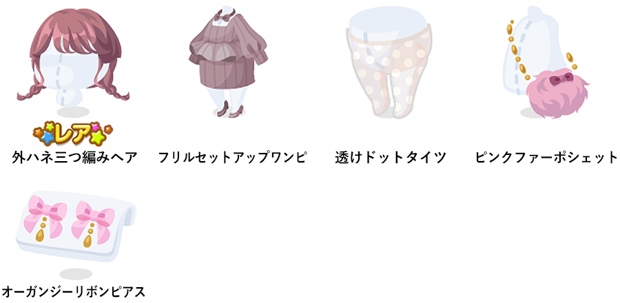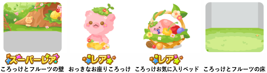 ★ころっけふたばエクステ(F) ☆金のさくらんぼいっぱい!(C) ころっけなりきりワンピ(F) ふさふさころっけベレー(F) フルーツ手さげかご(F)