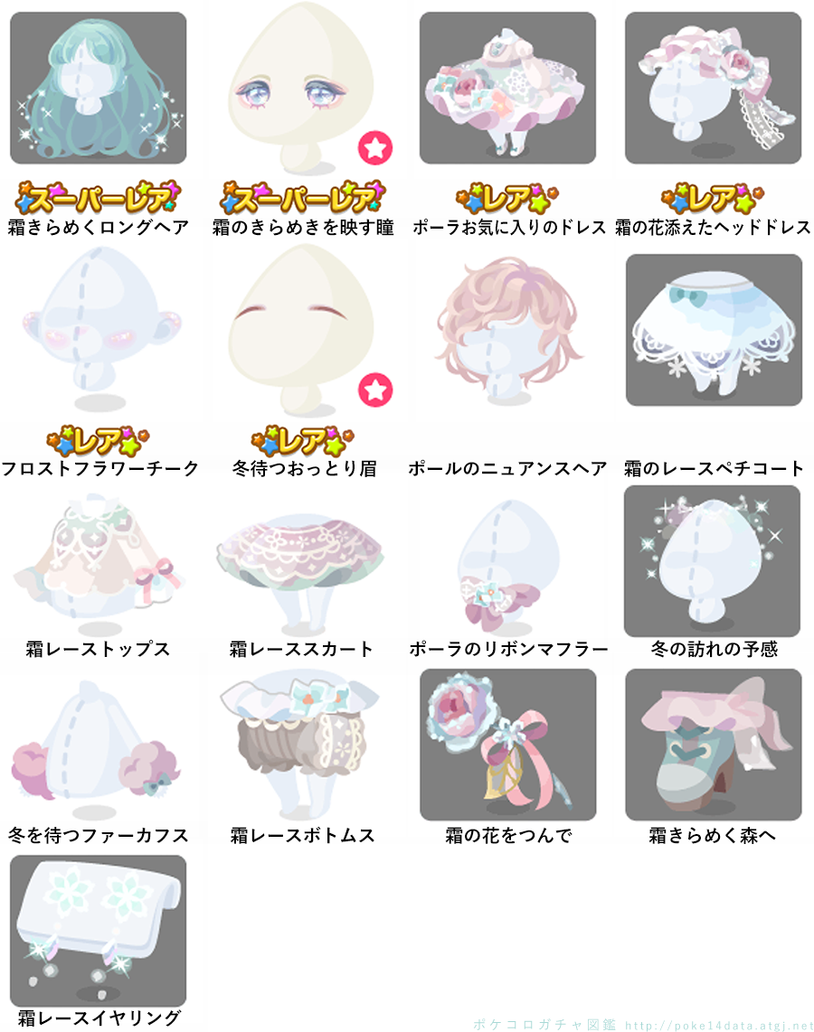 ★霜きらめくロングヘア ★霜のきらめきを映す瞳(顔パーツ) ☆ポーラお気に入りのドレス ☆霜の花添えたヘッドドレス ☆フロストフラワーチーク ☆冬待つおっとり眉(顔パーツ) ポールのニュアンスヘア 霜のレースペチコート 霜レーストップス 霜レーススカート ポーラのリボンマフラー 冬の訪れの予感 冬を待つファーカフス 霜レースボトムス 霜の花をつんで 霜きらめく森へ 霜レースイヤリング