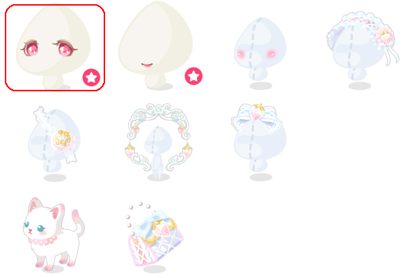 ★夢見る白苺アイ(顔パーツ) ☆ほんのりお嬢様リップ(顔パーツ) ☆ほんのり色づくツヤチーク ☆白苺ヘッドフリルドレス ☆白苺レースアイパッチ きらめく白苺チャーム 白苺チャームリボン おさんぽブランシュ 白苺キルティングバッグ