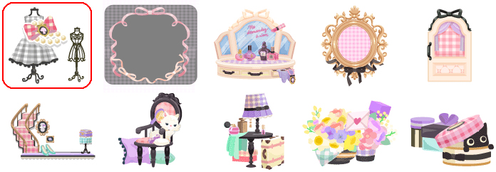 ★おめかしギンガムの壁 ☆ときめきアンティークバス ☆きょろきょろミゼルベッド 優雅なプリマソファ おめかしギンガムの床 レディのドレッサー プレゼントフラワートイレ お買い物中毒なプランター ギンガムシャンデリア