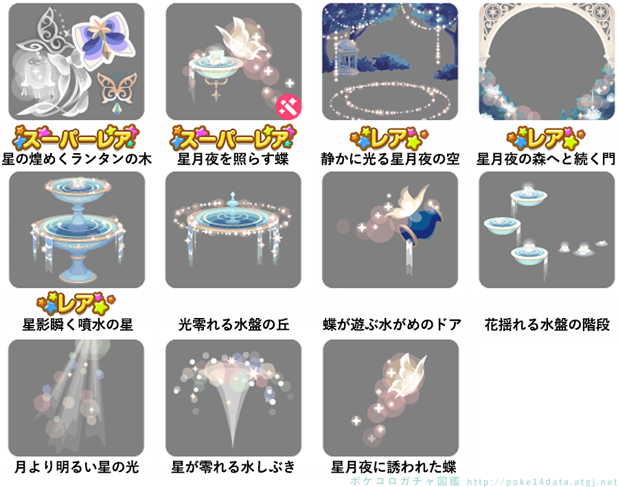 ★星の煌めくランタンの木 No.1357 星月夜の煌めきソーダ 星飾りのリボンの実 ★星月夜を照らす蝶(フィルターアイテム) ☆静かに光る星月夜の空 ☆星月夜の森へと続く門 ☆星影瞬く噴水の星 光零れる水盤の丘 蝶が遊ぶ水がめのドア 花揺れる水盤の階段 月より明るい星の光 星が零れる水しぶき 星月夜に誘われた蝶